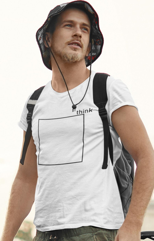 think Slogan Baskılı, Pamuklu Bisiklet Yaka Erkek Tişört