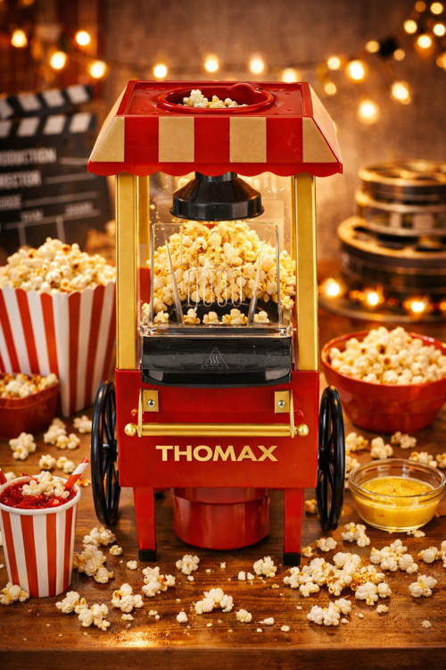 Thomax mısır patlatma makinesi ile evinizde kısa sürede, yağsız ve lezzetli popcorn hazırlayarak hem kendiniz hem sevdikleriniz için sağlıklı atıştırmalıklar yapabilirsiniz.