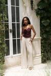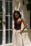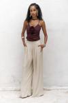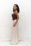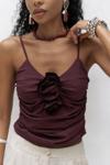 Ayarlanabilir ince askılı, crop bluz. Pamuk karışımlı, vucudü saran formda ve gül detaylı tasarım.