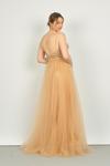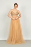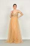 Detay: İp askılı, kabarık model, taş işlemeli, astarlı abiye elbise;