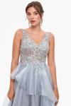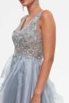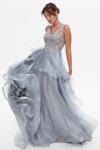 Tiara Kadın Derin Sırt Dekolteli Katlı Abiye Elbise 260560 Gri