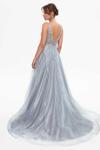 Kadın Derin Sırt Dekolteli Katlı Abiye Elbise 260560 Gri