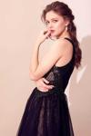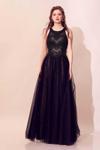 Detay: Sıfır kollu, halter yaka, üst bedeni sık inci süslemeli, sırtı dantel transparan, inci süslemeli tül etekli,