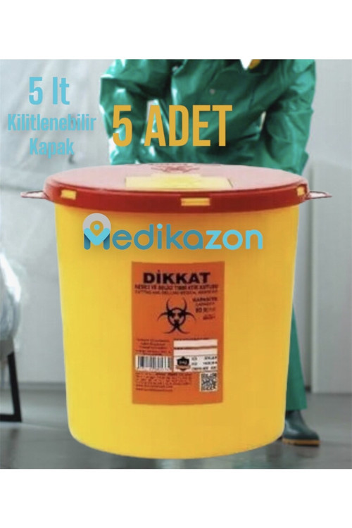 Enfekte Tıbbi Atık Kovası, Dayanıklı Plastik Malzeme, 5 litre kapasite, Kilitlenebilir Kapak, Medikazon güvencesiyle, sektörde 15 yıllık tecrübe.