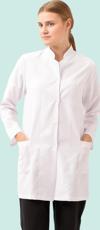 Sağlık sektöründeki kadın profesyoneller için özel olarak tasarlanmış, uzun kollu, beyaz renkli bir laboratuvar önlüğüdür. Şıklığı ve fonksiyonelliği birleştiren tasarım, gün boyu sürecek konfor sunar.