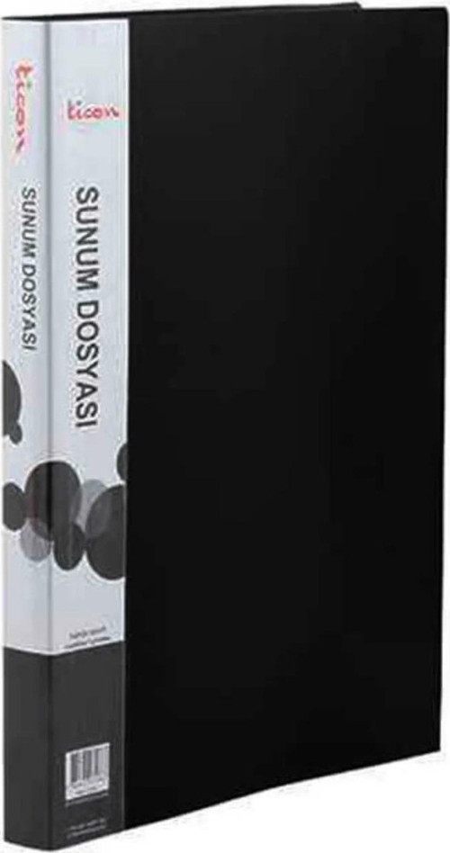 Ticon markalı, A4 boyutunda 100 sayfalık sunum dosyası Şeffaf iç yapraklar ile belgelerinizi düzenli şekilde saklar Kaliteli ve esnek kapak yapısıyla uzun ömürlü kullanım Evrak, ödev, sunum ve arşivleme işlemleri için idealdir Okul, ofis ve kurumsal kullanıma uygundur Geniş kapasitesiyle toplu belge taşıma ve koruma sağlar