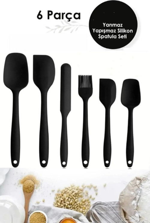 6lı Takım Yanmaz Yapışmaz Mutfak Pasta Silikon Yumurta Fırçası Kaşık Bıçak Spatula Seti likon spatula seti %100 silikon yanmaz sağlığa zararlı madde içermez.