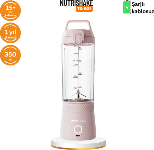 Tigrecook TIGRECOOK Blender Kişisel Taşınabilir Kablosuz Mikser ve Smoothie Makinesi Şarj Edilebilir pembe