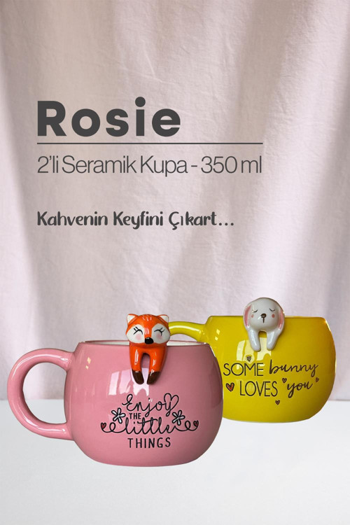 Tilki ve Tavşan Figürlü Seramik Kupa 350 ml