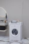 Bu ürün, çamaşır makinelerinin üst kısmında düzen ve estetik sağlamak amacıyla tasarlanmış fonksiyonel bir üst dolaptır. Dayanıklı suntalam malzemeden üretilmiş olan dolap, hem modern görünümüyle banyonuza şıklık katar hem de temizlik ürünleri gibi eşyalar için pratik bir saklama alanı sunar.