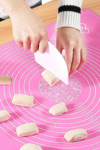 Silikon silpat üzerindeki ölçüler net olup hamurunuzun ebatını ayarlamanıza yardımcı olur.