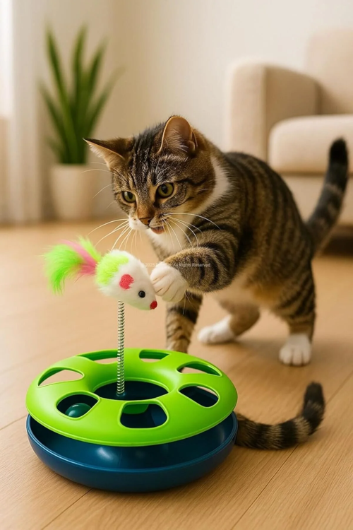 - Fareli kedi çemberi tasarımı ile kedilerin ilgisini çeker ve onların zihinsel uyarımını artırır.