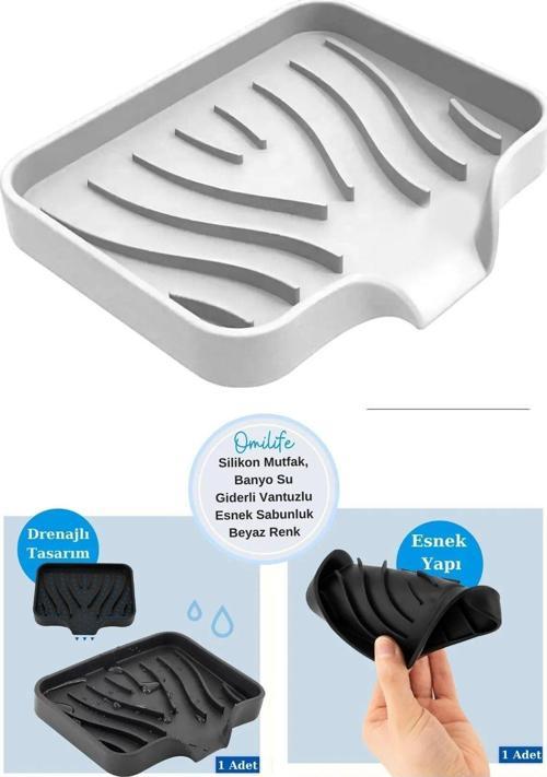 Tineke Silikon Mutfak, Banyo Su Giderli Vantuzlu Esnek Sabunluk Beyaz Renk