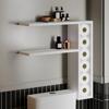 Duvara monte edilen tasarımı sayesinde zeminde yer kaplamaz; üst ve orta rafları kişisel bakım ürünleri, dekoratif objeler veya temizlik malzemeleri için kullanılırken, dikey bölmesi 8 adet tuvalet kağıdı rulosunu düzenli şekilde saklamanıza olanak tanır.