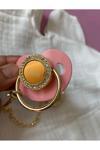 Tiny Wood Altın Kaplama İsimli Zirkon Taşlı Silikon Emzik Seti (0-6 Ay) – Damaklı & Kişiye Özel Pembe