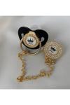 Tiny Wood Altın Kaplama “Prens ” Yazılı Emzik Seti – Zirkon Taşlı Pembe Emzik Ve Zincir