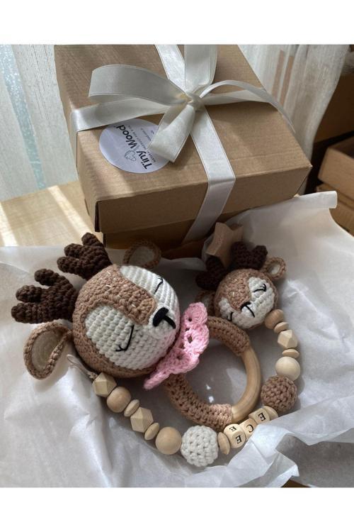 Organik ipler kullanılarak el emeği ile üretilmiştir. Organik oyuncak sınıfındadır.(Oeko-Tex Sertifikalı)Sağlığa zararlı hiçbir madde bulunmamaktadır. setimiz 2 adet üründen, emzik zinciri ve çıngıraktan oluşmaktadır. Çıngırak diş kaşıyıcı olarak kullanılır ve ses çıkarmaktadır. Not:Emzik zincirine isim yazdırmak için tarafımıza sipariş soruları not bölümünden bildirim yapmanızı rica ederiz. Ürün Özellikleri:, Çıngırak uzunluğu: 14 cm çapı:7 cm Emzik Zinciri Uzunluğu: 18 cm, Not: Emzik klipsi stok durumuna göre ( yuvarlak, kalp, yıldız) figür değişikliği gösterebilir. Emzik askısından kullanılan boncuklar şekil olarak ( geometrik, yuvarlak ) stok durumuna göre değişiklik gösterebilir. Hediye setimiz kraft hediye kutuda, seten kurdela ile hazırlanıp süslenmiş olarak gönderilir.