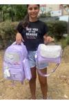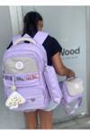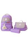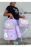 Tiny Wood Kız Çocuk İlköğretim Çantası Ultra Hafif İlkokul / Ortaokul Okul 3 Lü Çanta Seti Pembe-Lila -Gri