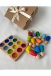 Waldorf renkli peg bebek ve tabla eşleştirme seti, çocukların motor becerilerini geliştirmek ve hayal gücünü beslemek için tasarlanmış ahşap oyuncaktır