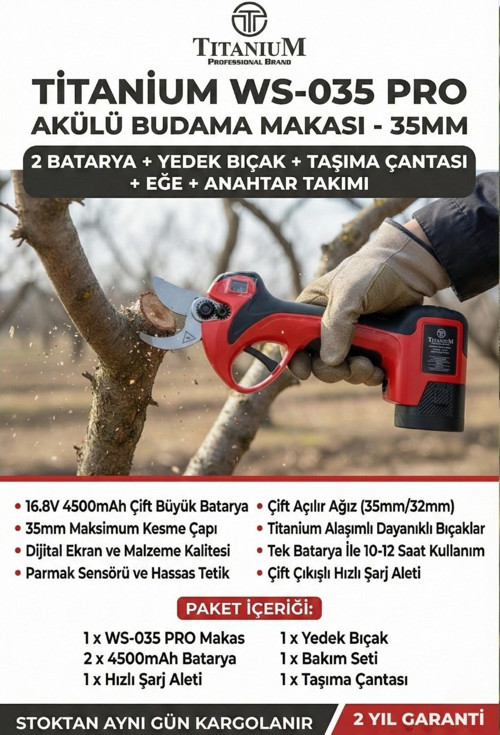 Titanium WS035 Pro Akülü Budama Makası