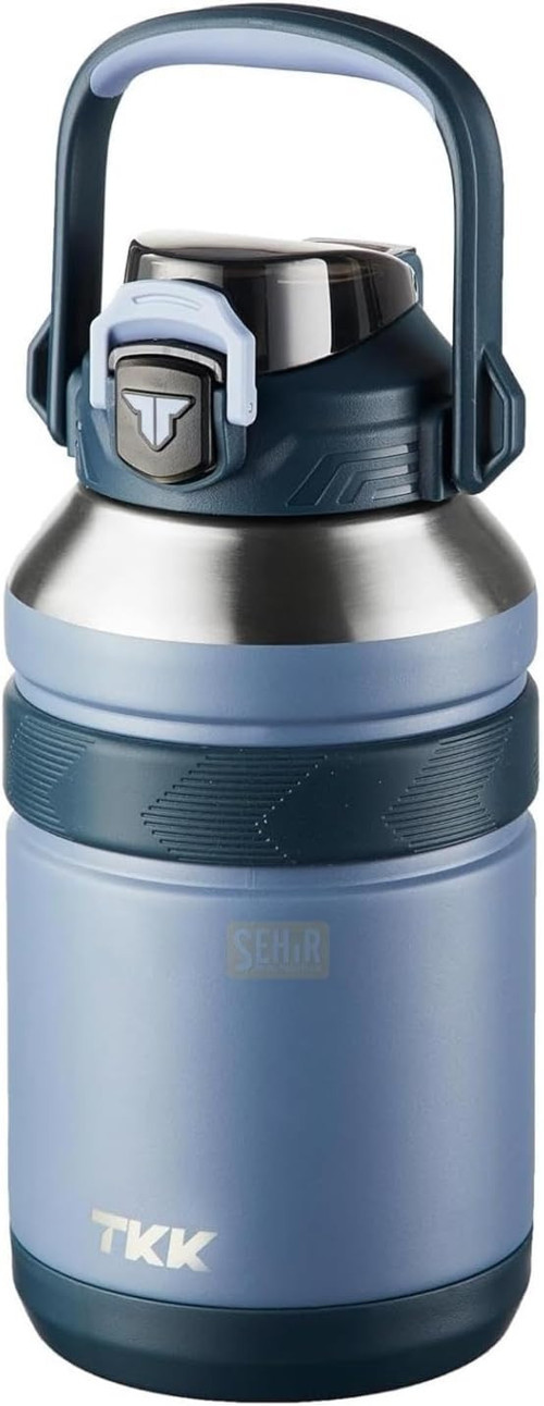 Genelec Tkk Büyük Boy 1000Ml Pipetli/Pipetsiz Kullanım Askılı Paslanmaz Çelik Termos Matara (Lacivert)