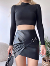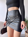 Yeni sezonun trend parçalarından Tokalı Deri Etek Siyah S240097, şık ve zarif görünümüyle öne çıkıyor.