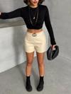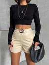 Önünde bulunan tokalarıyla farklı bir tarz yaratan bu şort, günlük kullanımdan özel davetlere kadar birçok farklı ortamda tercih edilebilir.