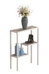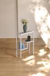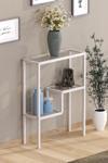 Tolia Home Modern Beyaz Renk Metal Iskeletli Temper Camlı Raflı Dresuar Konsol Çiçeklik Saksılık