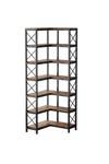 Modern tasarımıyla evinizin dekorasyonunu tamamlayan, şık ve fonksiyonel bir köşe kitaplık ve depolama rafı.