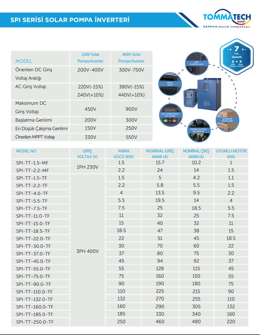 TommaTech 5,5 kW 900VDC 3 Faz/380VAC Sulama Pompası İnverteri