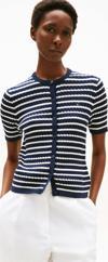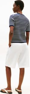 Tommy Hilfiger Kadın Pamuklu İnce Örgü Kısa Kollu Bisiklet Yaka Mavi Kazak WW0WW457070BB