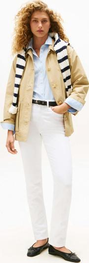 Tommy Hilfiger Kadın Pamuklu Naylon Normal Kesim Bej Safari Ceket WW0WW45620AEX