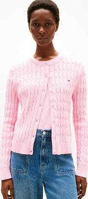 Tommy Hilfiger Kadın Pamuklu Orta Kalınlıkta Örgü Bisiklet Yaka Pembe Kazak WW0WW46514TOL