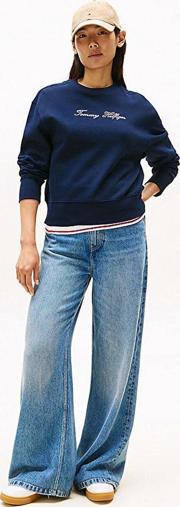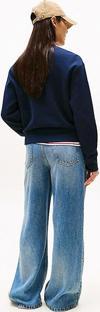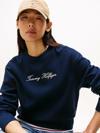 Tommy Hilfiger Kadın Simli Yazı Baskılı Normal Kesim Mavi Kazak WW0WW47159C1G