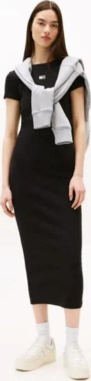 Tommy Jeans Kadın Armalı Fitilli Midi Siyah Elbise DW0DW20873BDS