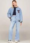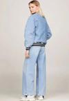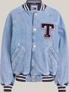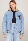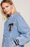 Üniversite stiline uygun, raglan kollu, rahat, büyük kesimli bu denim letterman ceket ile dış giyiminize takım ruhunu katın.