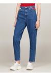 Tommy Jeans Yüksek Bel Düz Paça Tapered Fit Açık Mavi Kadın Denim Pantolon Mom Jean Uh Tpr Flag Ch61