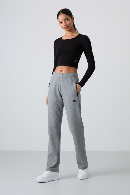 Tommy Life Gri Melanj Fermuar Cepli Rahat Form Klasik Paça Kadın Eşofman Alt - 94195