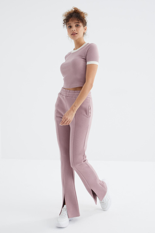 Gül Kurusu Yüksek Bel Ön Yırtmaç Detaylı Yan Cepli Rahat Form Kadın Eşofman Alt - 94625