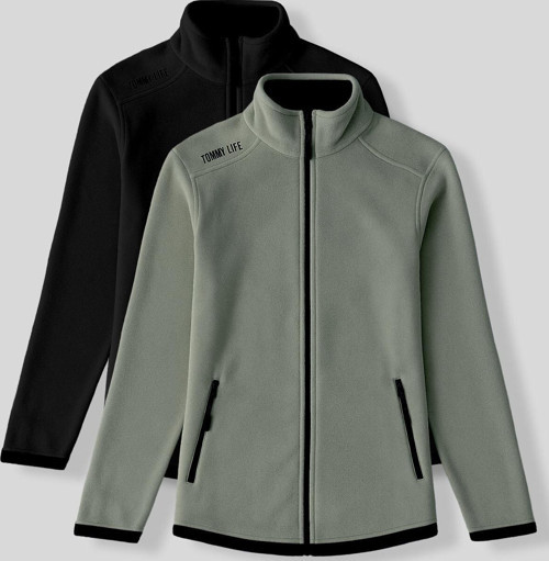 Tommy Life Rahat Form Dik Yaka 2li Paket Siyah-Çağla Kadın Polar Sweatshirt - 97173