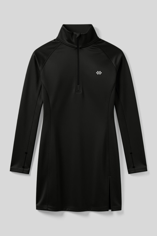 Siyah Yarım Fermuarlı Dik Yaka Standart Kalıp Kadın Sporcu Tunik - 97309