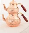 Şık tasarımıyla göz alıcı bir görünüm sunan bakır çaydanlık takımı, büyük ahşap saplarıyla hem kullanışlı hem de estetik bir deneyim vadediyor.