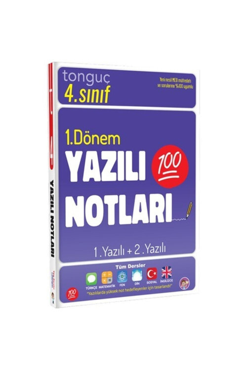 Tüm derslerin kapsamlı bir şekilde ele alındığı Tonguç 4. Sınıf Yazılı Notları 1. Dönem 1 ve 2. Yazılı, öğrencilerin sınavlarına hazırlık yapmalarını kolaylaştırır.