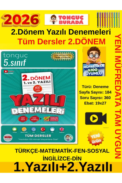 - 5. sınıf öğrencilerinin 2. dönem yazılılarına yönelik, tüm dersleri kapsayan deneme setleri.