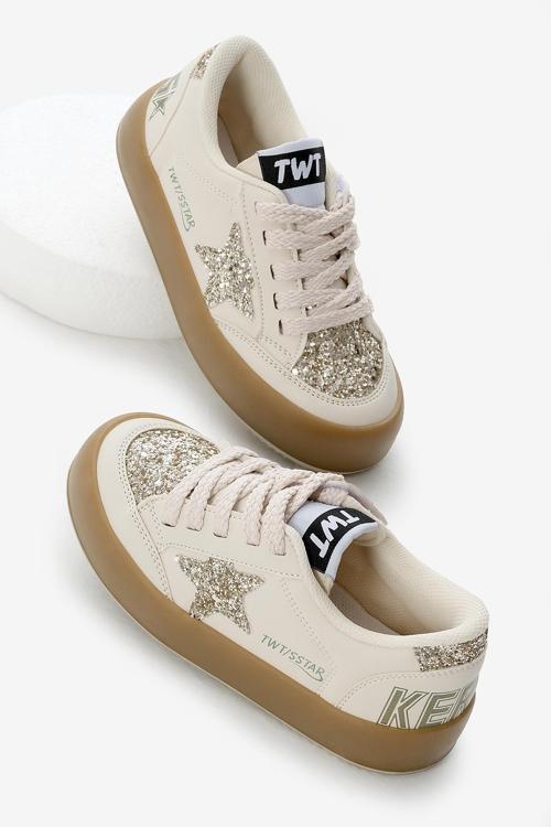 Çocuk Unisex Krem Termo Taban Yıldız Detaylı Bağcıklı ve Cırtlı Spor Ayakkabı