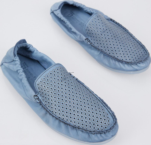 Erkek Mavi Arkası Lastikli Hakiki Deri Loafer