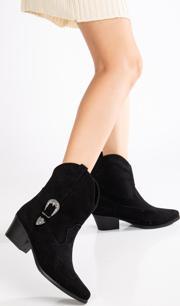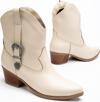 Tonny Black Kadın Bej Cilt Termo Taban Tokalı Sivri Burunlu Western Kovboy Bot