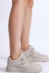 Kadın Bej Yüksek Poli Taban Yanı Şeritli Bağcıklı Spor Ayakkabı
