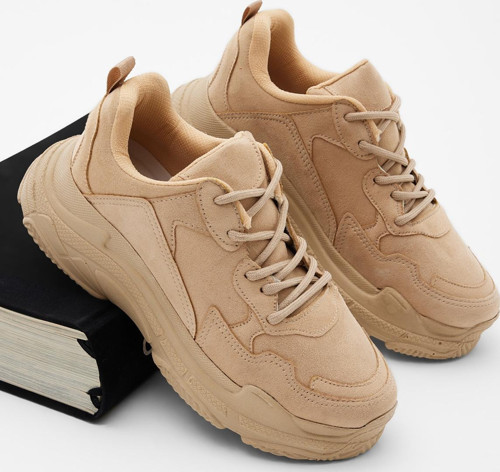 Kadın Bej Yüksek Taban Bağcıklı Spor Ayakkabı