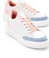 Kadın Beyaz Pudra Rahat Kalıp Yüksek Poli Taban Bağcıklı Spor Ayakkabı